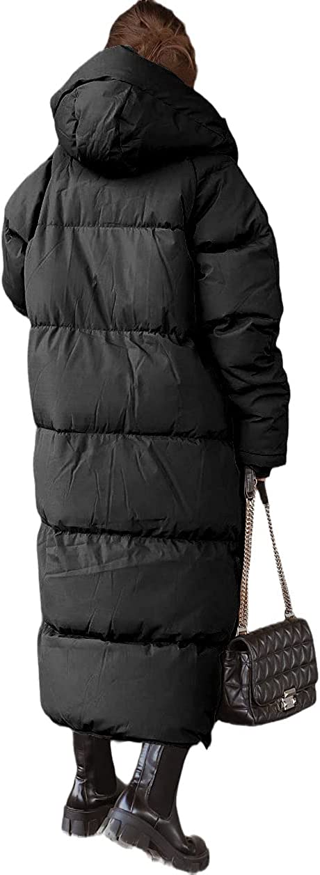 Women Long Quilted Coat Hooded Maxi Length Long Sleeve Puffer Jacket Padded Coat Winter Outerwear