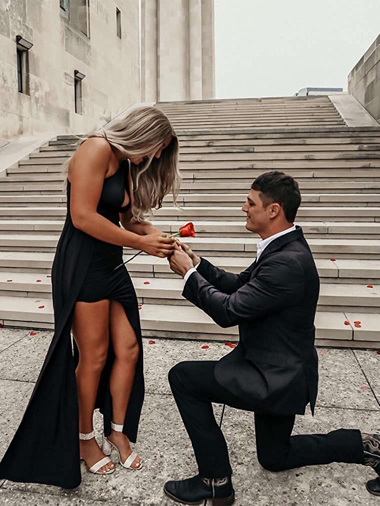 Women Sexy Elegant One Shoulder High Split Cutout Long Evening Dress