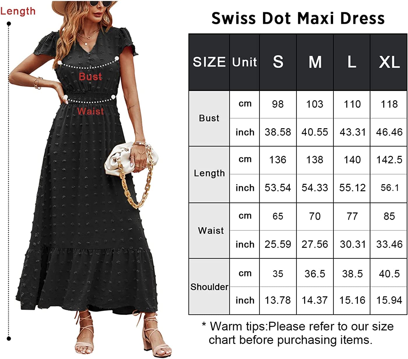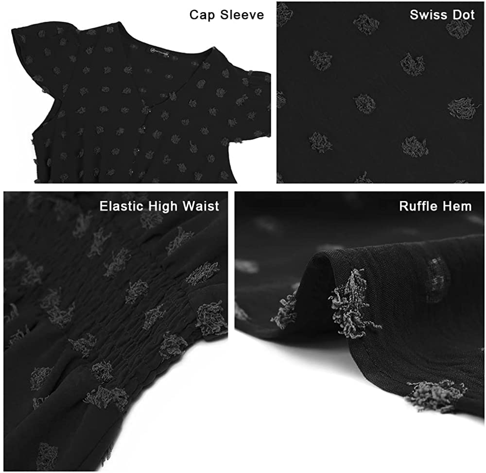 Women's Boho Dress Short Sleeve V Neck Swiss Dot Ruffle Tiered Maxi Dress Smocked Cocktail Dress