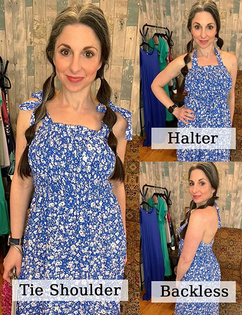 Women's Boho Dress Summer Spaghetti Strap Square Neck Flowy Ruffle Beach Long Maxi Dress