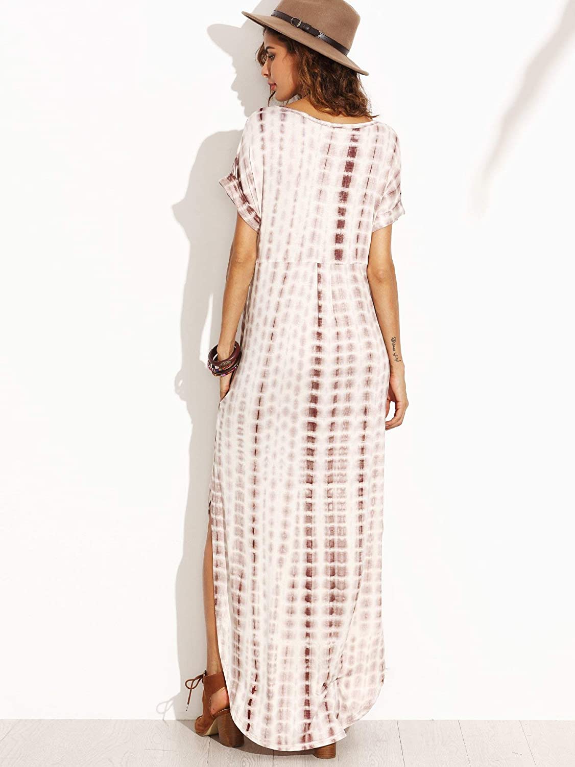 Women's Boho Maxi Short Sleeve Split Pockets Tie Dye Long Dress