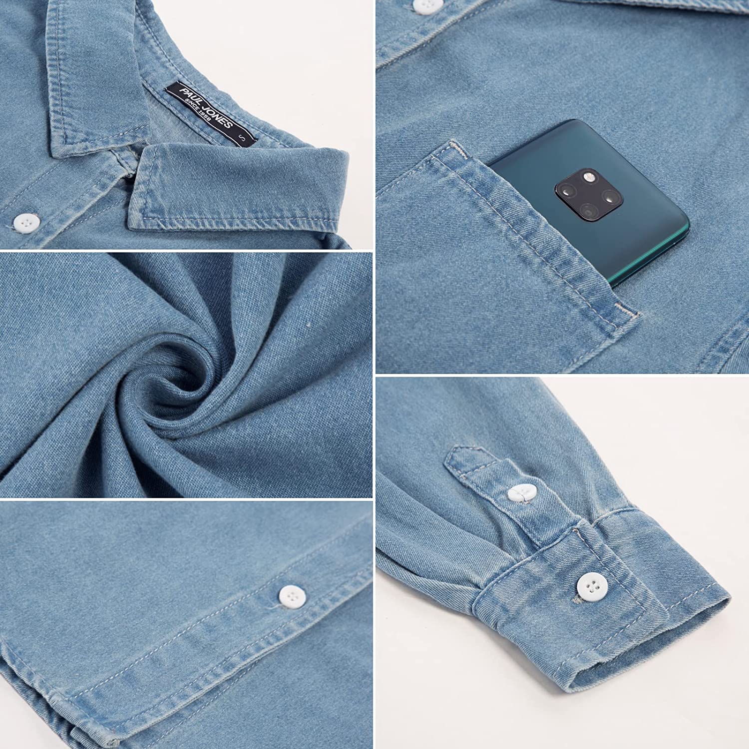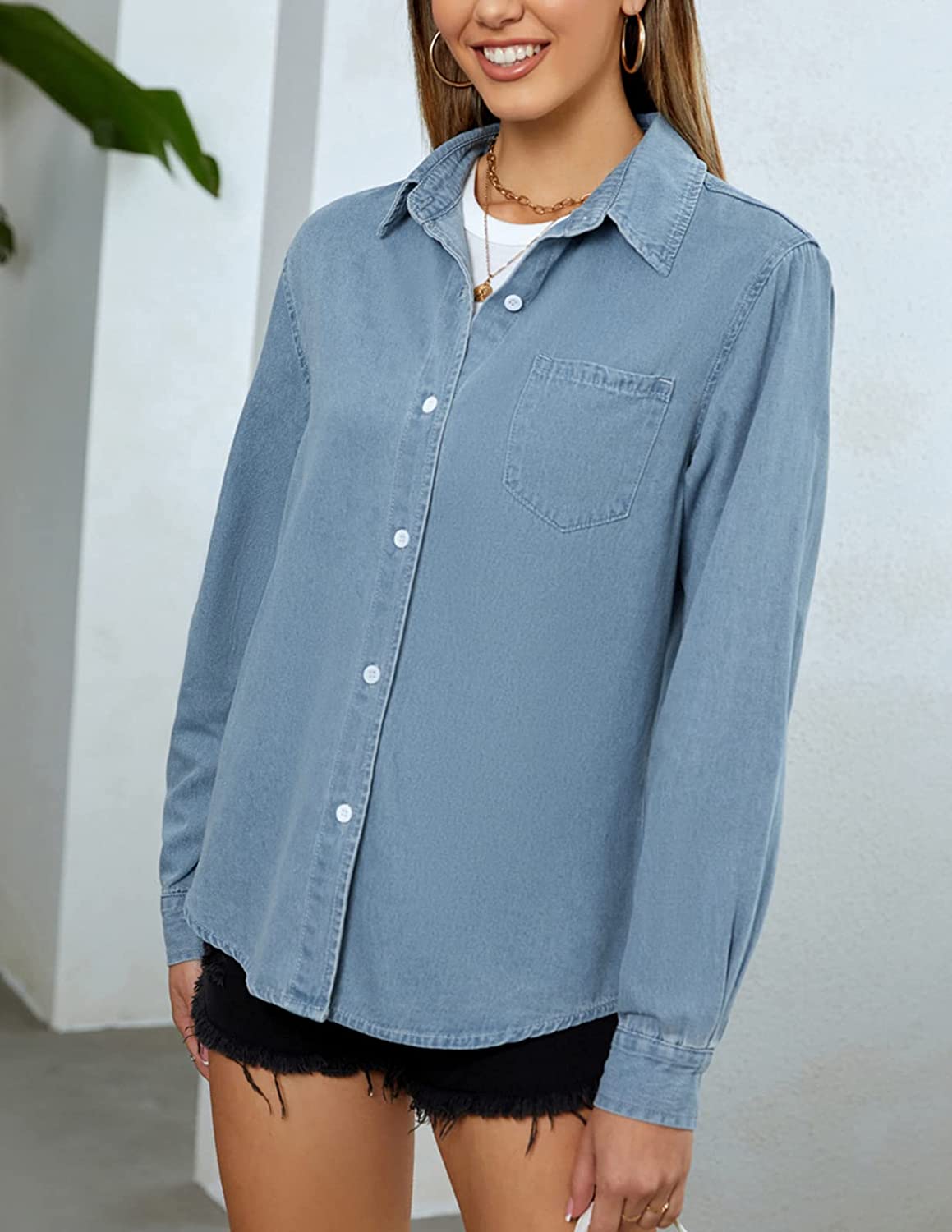 Women's Button Down Jean Shirt Casual Long Sleeve Classic Denim Blouse Jackets Relaxed Fit Chambray Shirt One Pocket