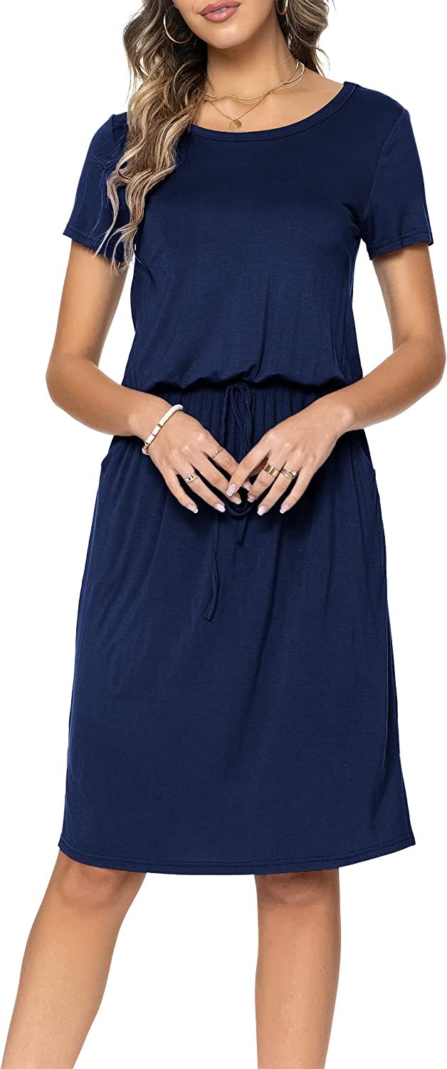 Women's Casual Hide Belly Drawstring Knee Length Dress