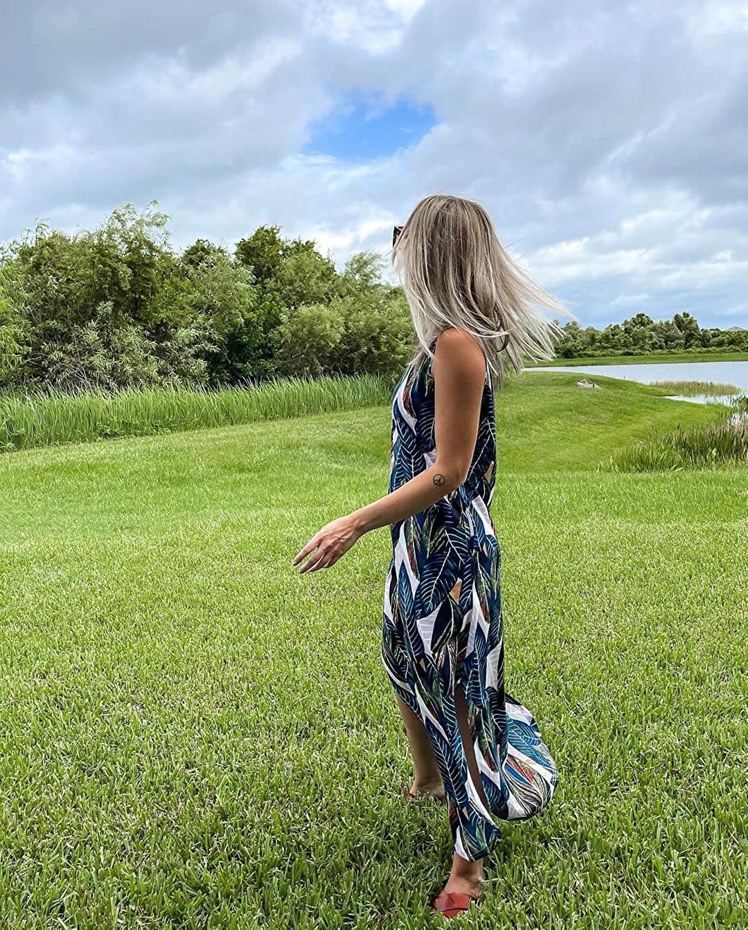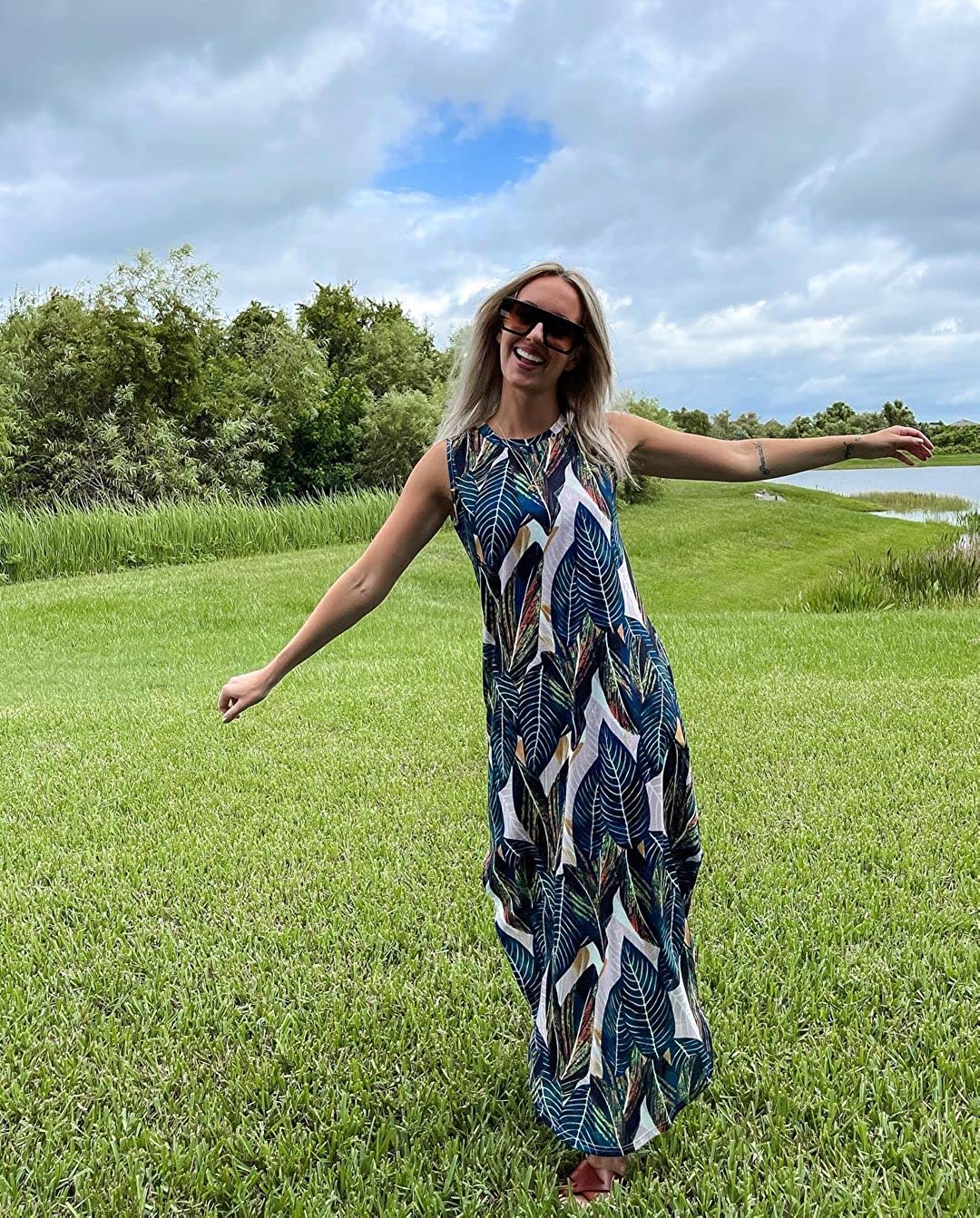 Women's Casual Loose Summer Long Dress Sleeveless Split Beach Maxi Dresses with Pockets