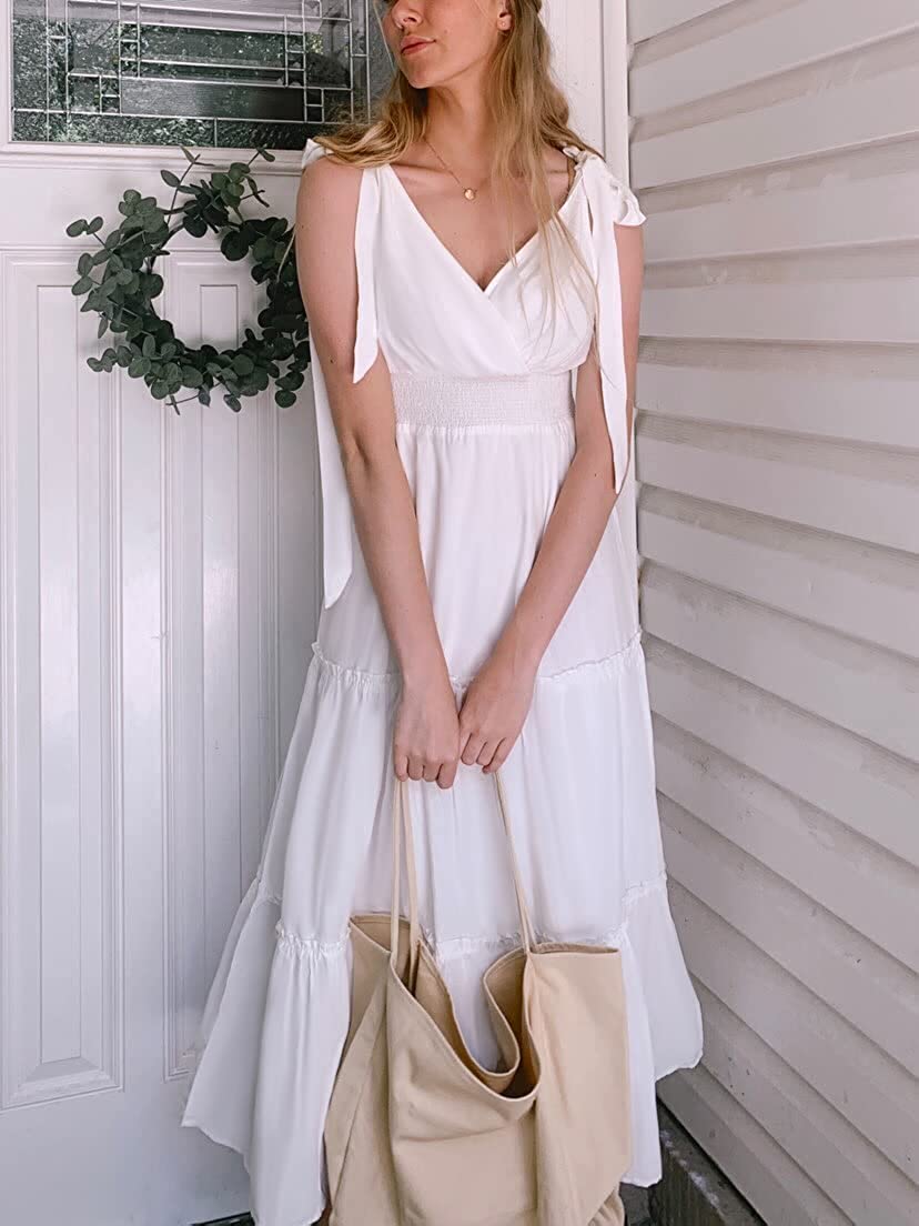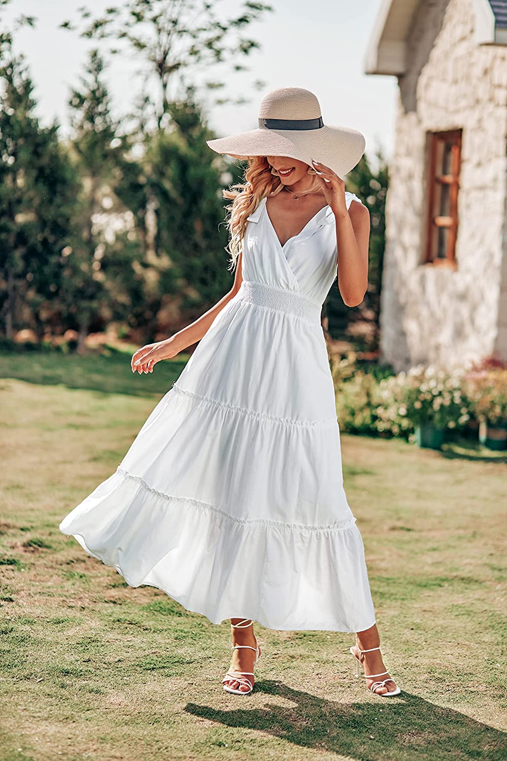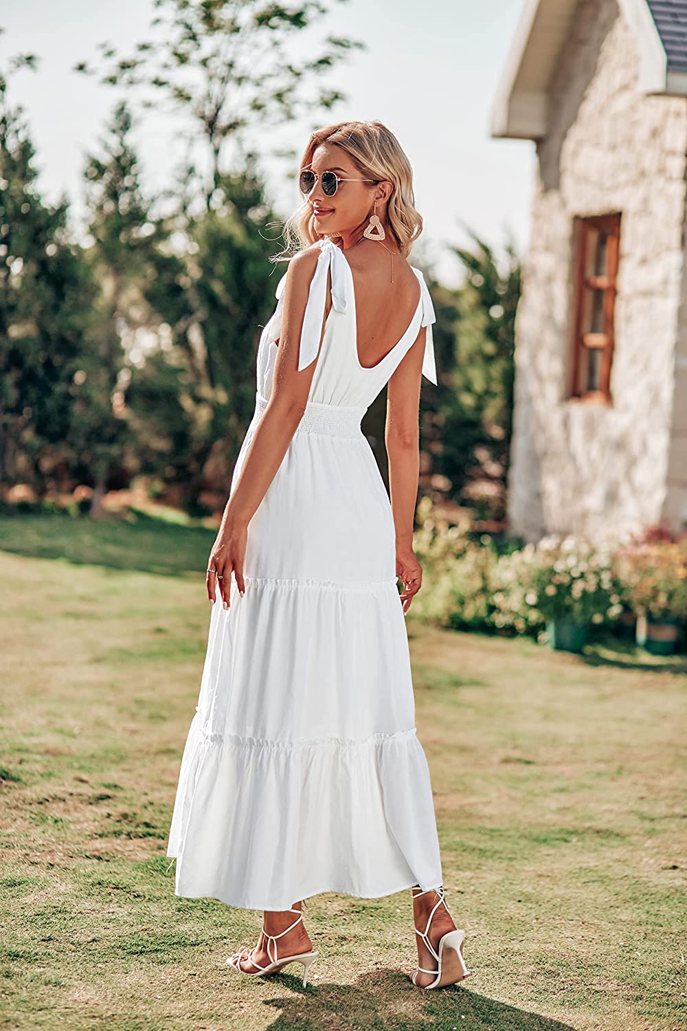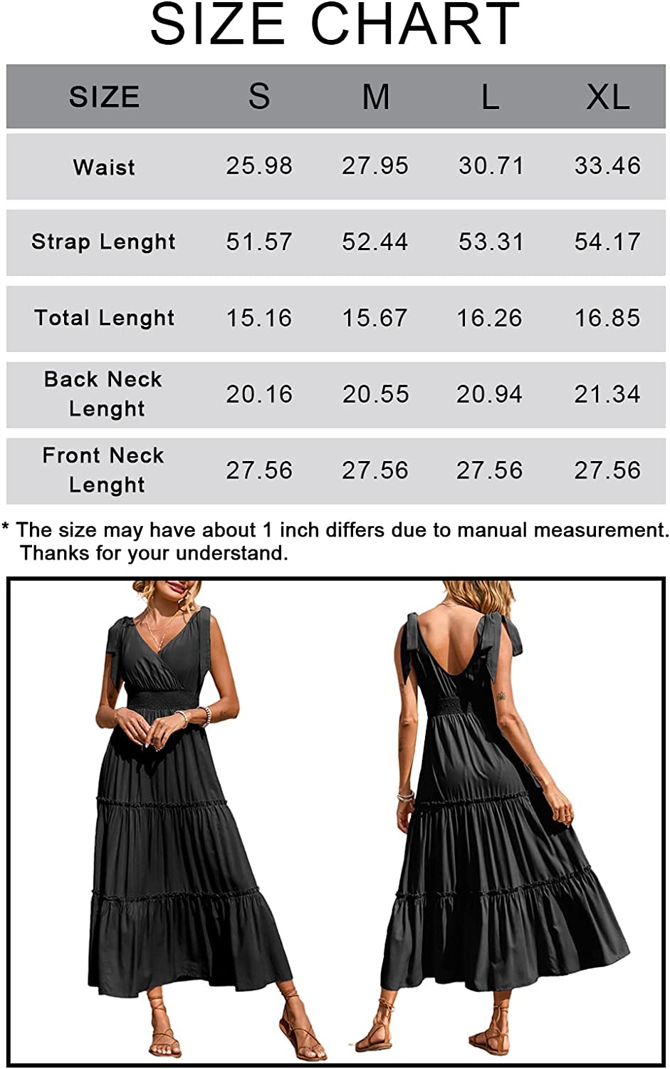 Women's Cross Neck Summer Sleeveless Tiered Maxi Dress Beach Tie Strap Smocked Long Dresses Pleated Sundress