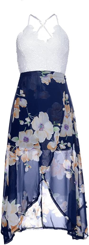 Women's Deep V Neck Sleeveless Summer Asymmetrical Floral Maxi Dress