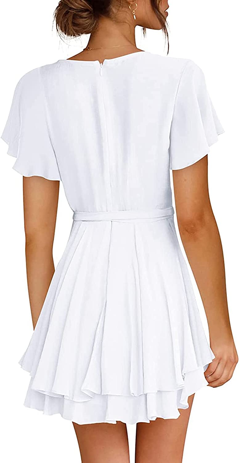 Women's Dress Deep V-Neck Long Sleeve Waist Tie Ruffle Mini Swing Skater Homecoming Dresses