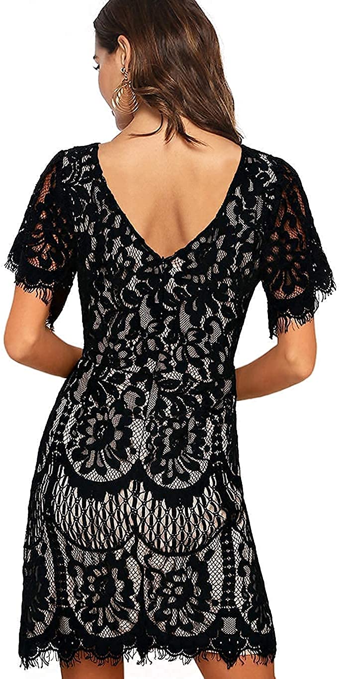 Women's Elegant Round Neck V-Back Wedding Guest Floral Lace Cocktail Party A Line Dress 910