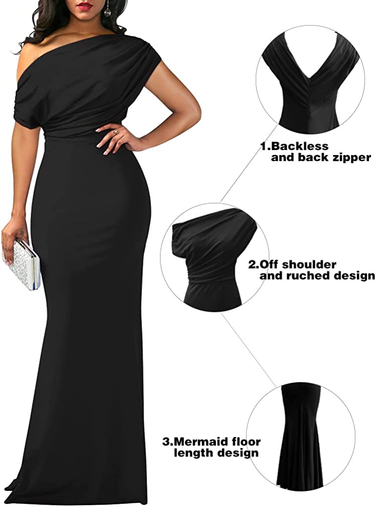 Women's Elegant Sleeveless Off Shoulder Bodycon Long Formal Party Evening Dress