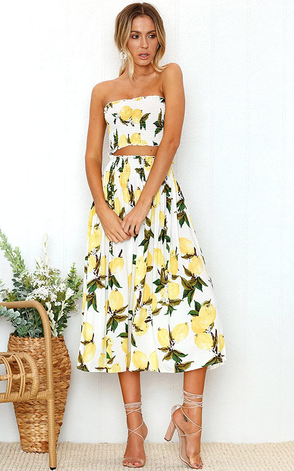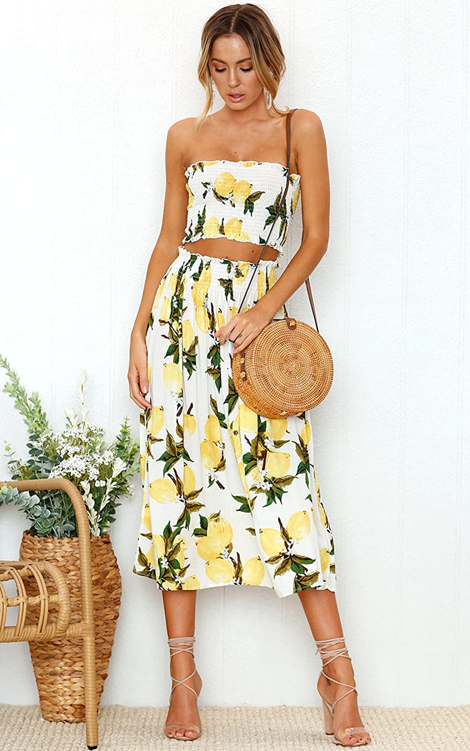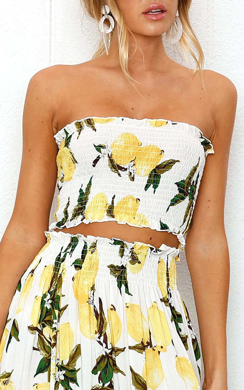Women's Floral Crop Top Maxi Skirts Set 2 Piece Outfit Dress