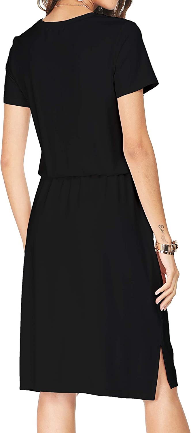 Women's Hide Belly Blouson Knee Length Dress with Pockets