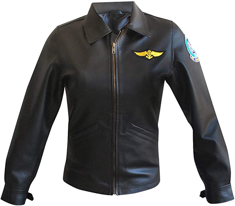 Women's Kelly McGillis Charlie Top Flying Gun Aviator Pilot Biker Bomber Jacket with Embroidery Patches