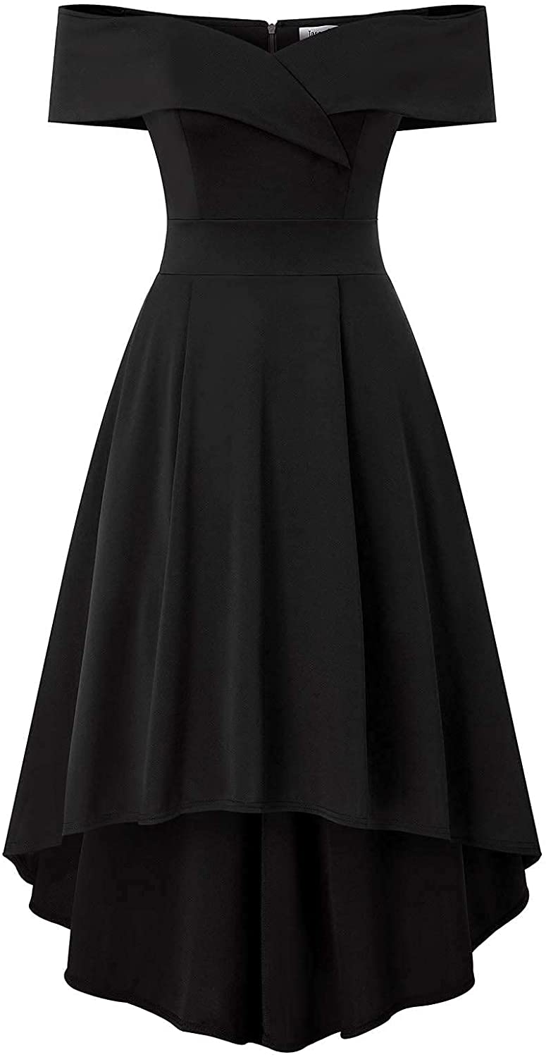 Women's Off Shoulder High Low A Line Wedding Guest Party Cocktail Dress