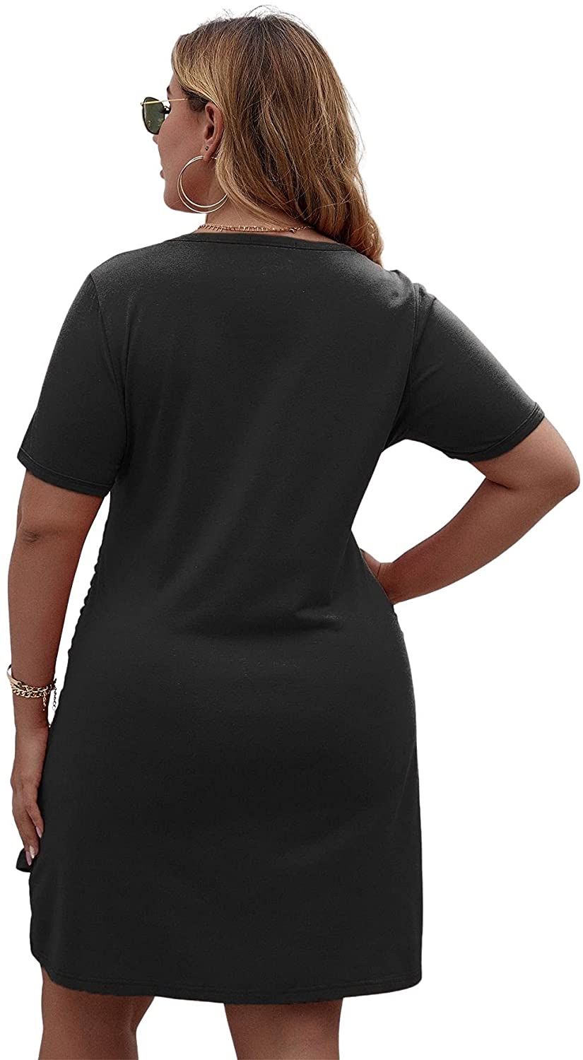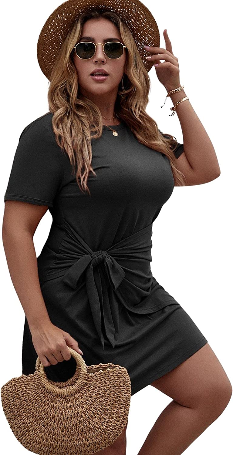 Women's Plus Size Short Sleeve Tie Knot Front Solid Summer T Shirt Dress