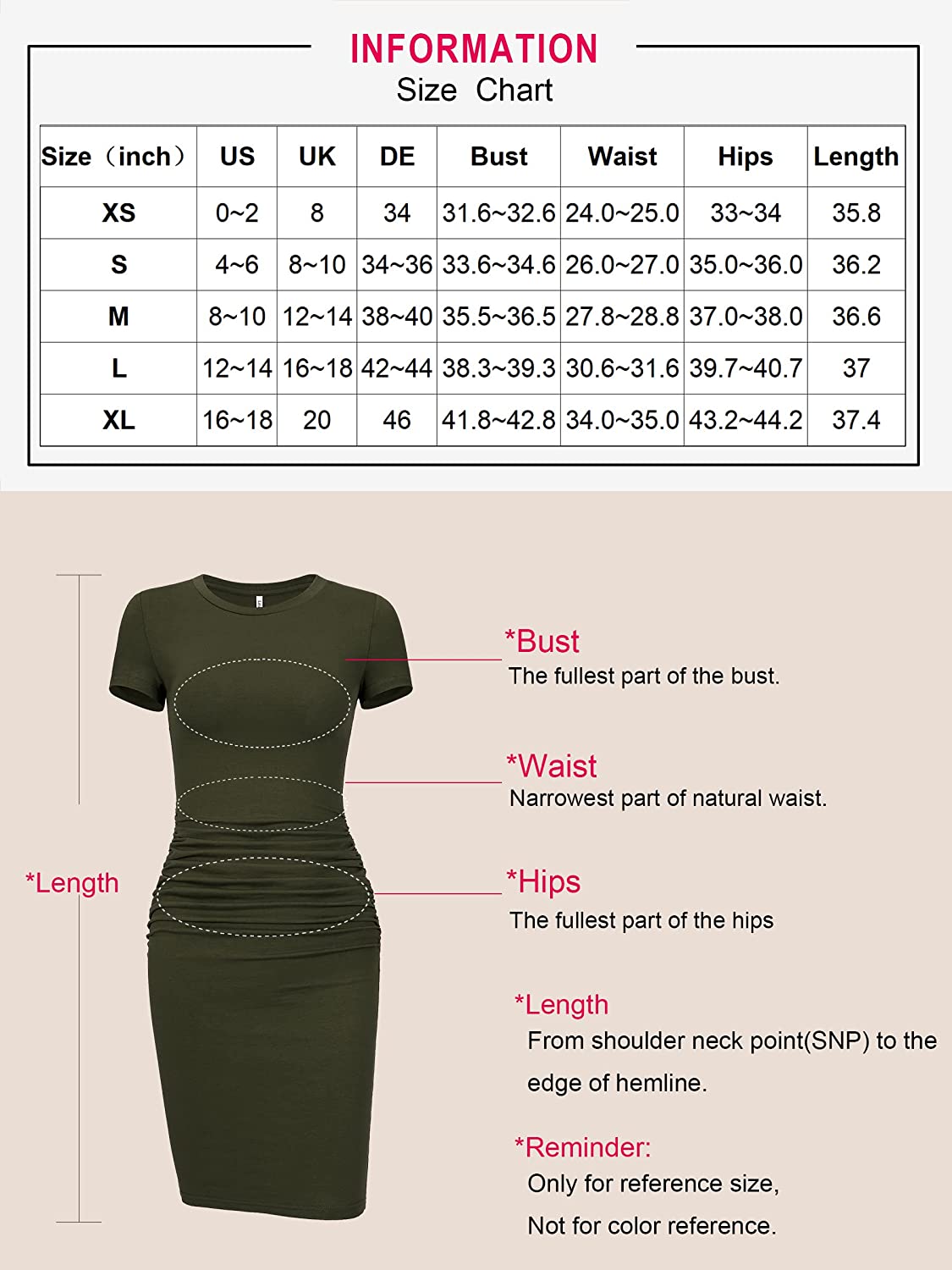 Women's Short Sleeve Ruched Sundress Knee Length Casual Bodycon T Shirt Dress