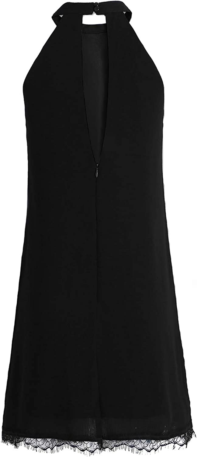 Women's Sleeveless Halter Neck Patchwork Lace Mini Casual Shift Dress