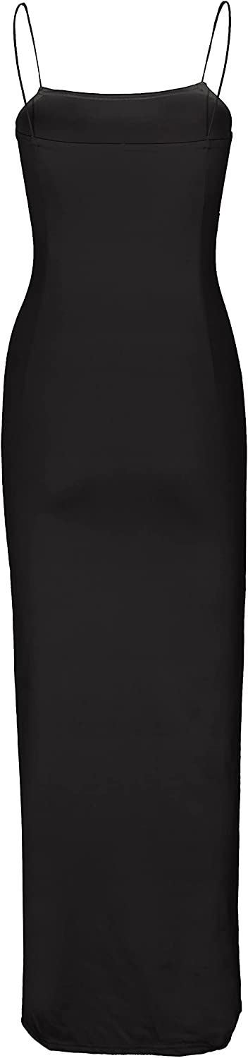 Women's Spaghetti Strap Backless Thigh-high Slit Bodycon Maxi Long Dress Club Party Dress