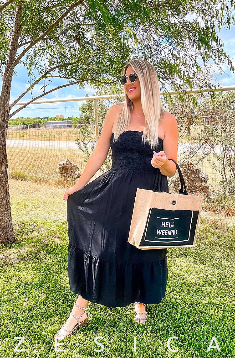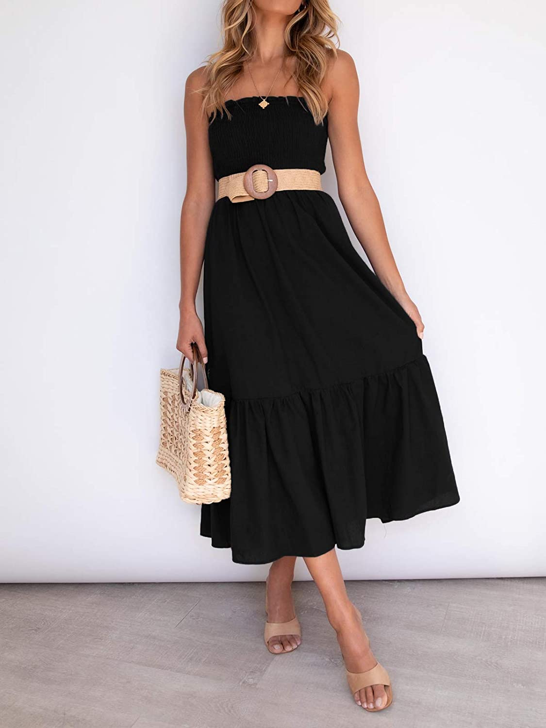 Women's Summer Bohemian Floral Printed Strapless Beach Party Long Maxi Dress