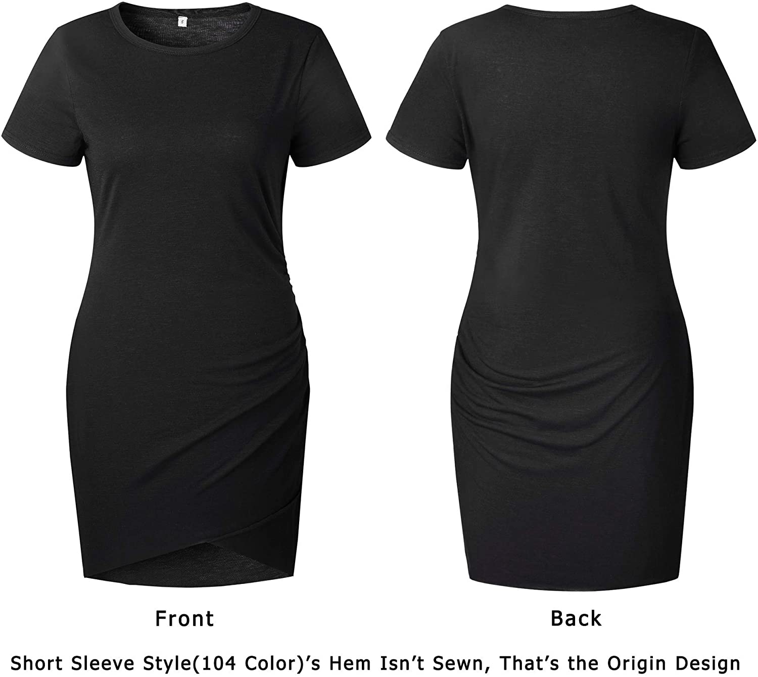 Women's Summer Casual Beach Dresses Crew Neck Short Sleeve Ruched Stretchy Bodycon T Shirt Wrap Mini Dress
