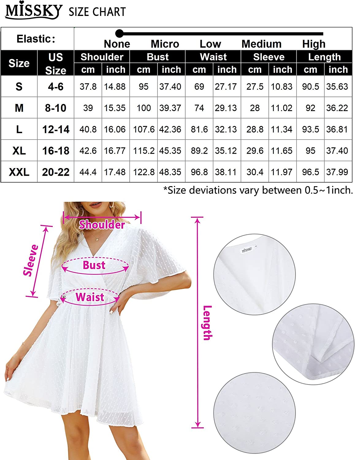 Womens Summer Swiss Dot Mini Dress Bell Short Sleeve V Neck Chiffon Wrap Elastic High Waist Casual Swing A Line Dresses