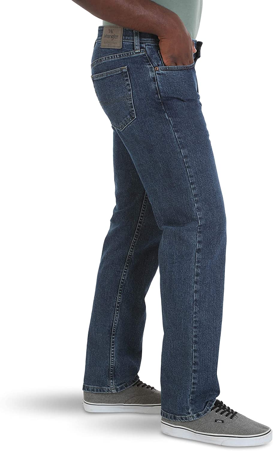 The Wrangler Authentics collection delivers laid-back style for the man on the go. Performance-level comfort is built into our classic button-downs and blue jeans for an outfit that feels as good as it looks. Wrangler Authentics jeans are constructed with 5-pocket styling, made from heavyweight 100% cotton denim and feature a comfortable waist with deep front pockets. Available with Advanced Comfort technology that helps your jeans move with you for all day comfort. Pair with your favorite Wrangler Authentics shirt for a night out or casual weekend.
