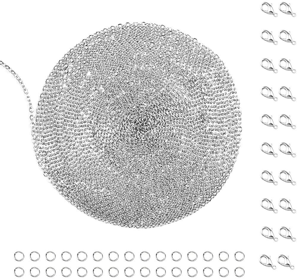 WXJ13 36 Feet Silver Stainless Steel Link Cable Chain with 20 Lobster Clasps and 30 Jump Rings for Men Women Jewelry Chain DIY Making, 2.0mm