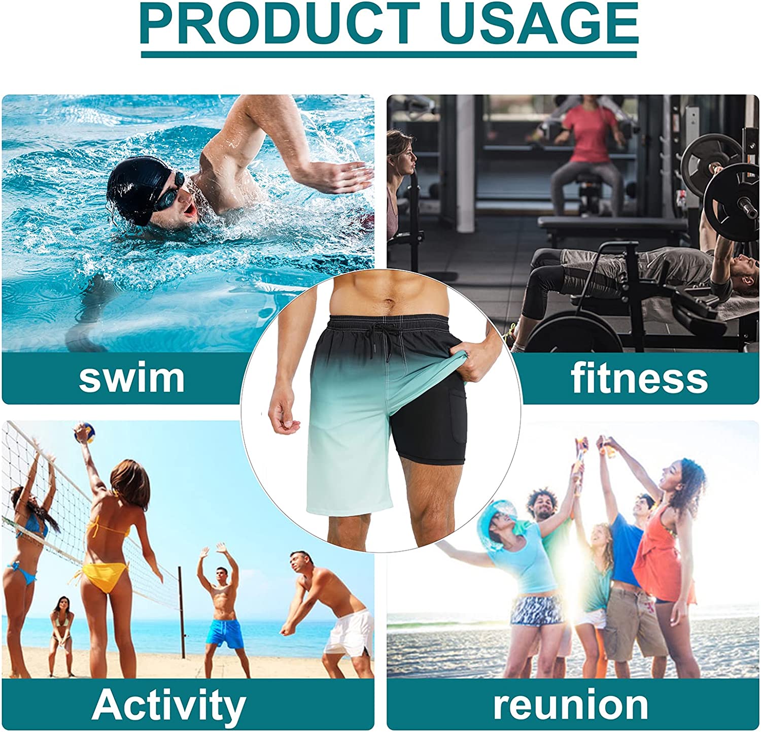 XSKJY Mens Swim Trunks with Compression Liner Swim Trunks Quick Dry Surfing Summer Beach Shorts Swimsuit Sports Shorts