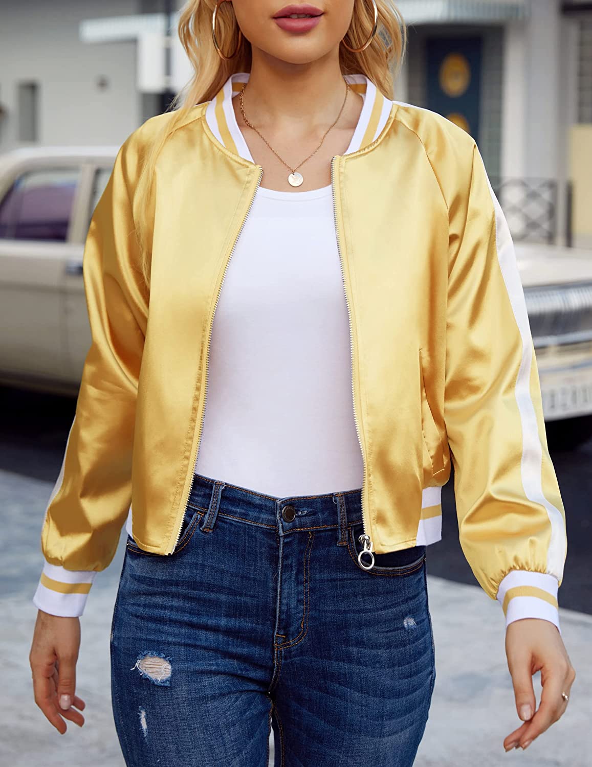 Zeagoo Women's Classic Solid Striped Biker Jacket Zip Up Fashion Bomber Jacket Coat