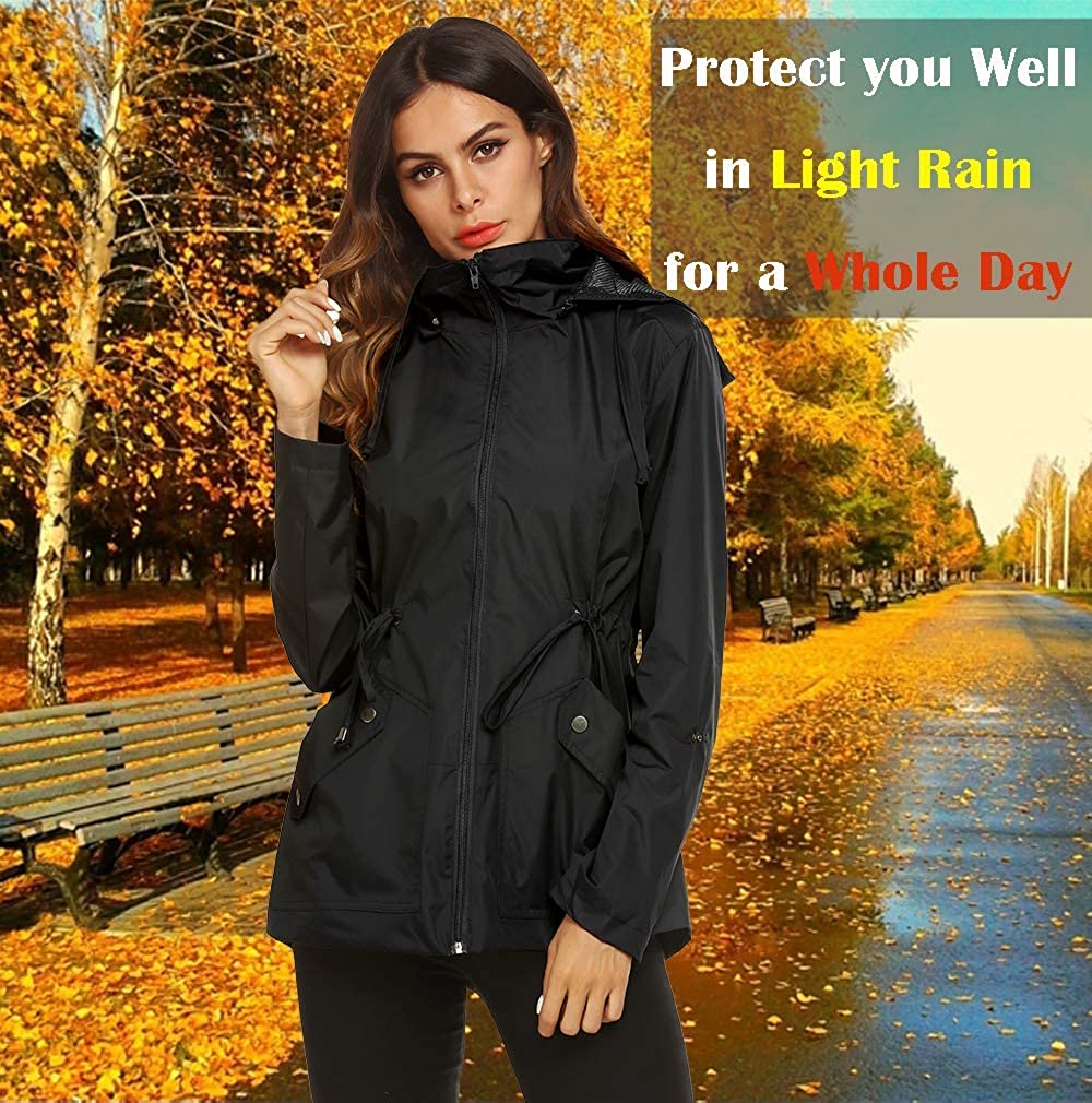 ZHENWEI Rain Jacket Women Waterproof with Lined Raincoat Outdoor Active Travel Hiking